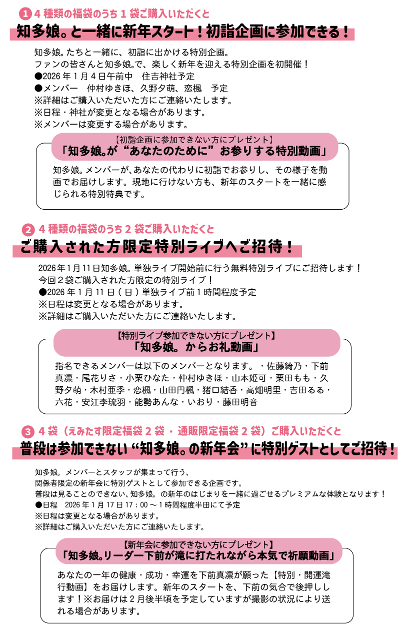 限定グッズ入り!寒い冬も、知多娘。キャラがそっと寄り添ってくれる。新アイテムを含む、福袋が登場です。開けた瞬間から、ほっこり幸せ気分に。