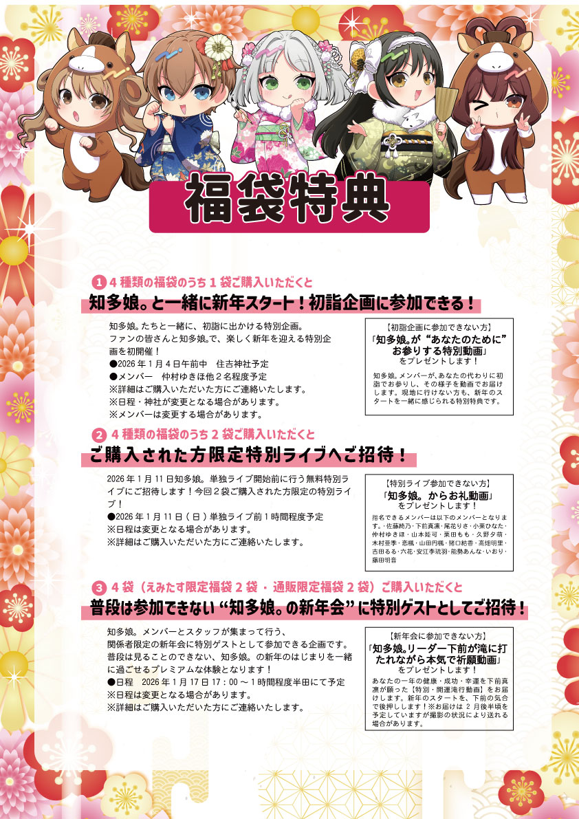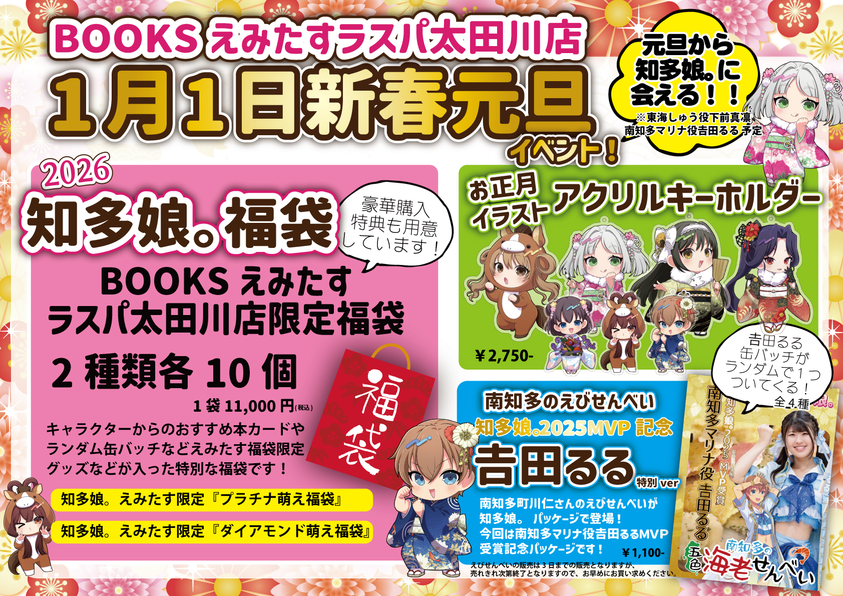 【1/1(元旦)】元旦から知多娘。に会える!!(メンバー追加更新)BOOKSえみたすラスパ太田川店にて知多娘。限定福袋販売